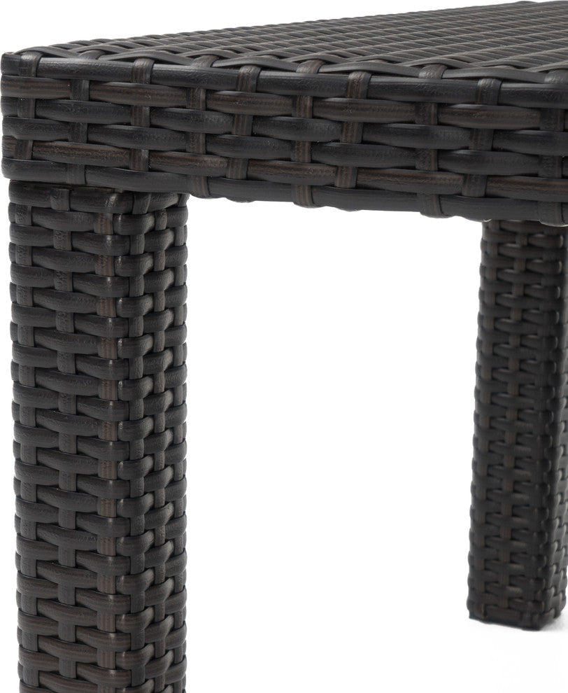 - Hand-woven, resin wicker is UV, weather, and water-resistant