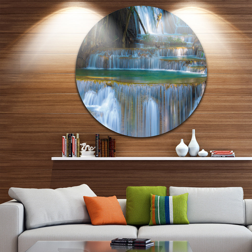 Bring Contemporary Abstraction to your home with this large Circle Metal wall art. This Deep Forest Waterfall Thailand Metal Artwork makes it the focal point of any room or office.