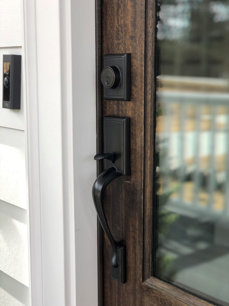 Delaney Hardware Kellington Single Cylinder Handle Set in Tuscany Bronze. Features all metal construction, with square plates and edges lending to a rustic or traditional look, Kellington Series displays an understated elegance that makes for a truly high class look.