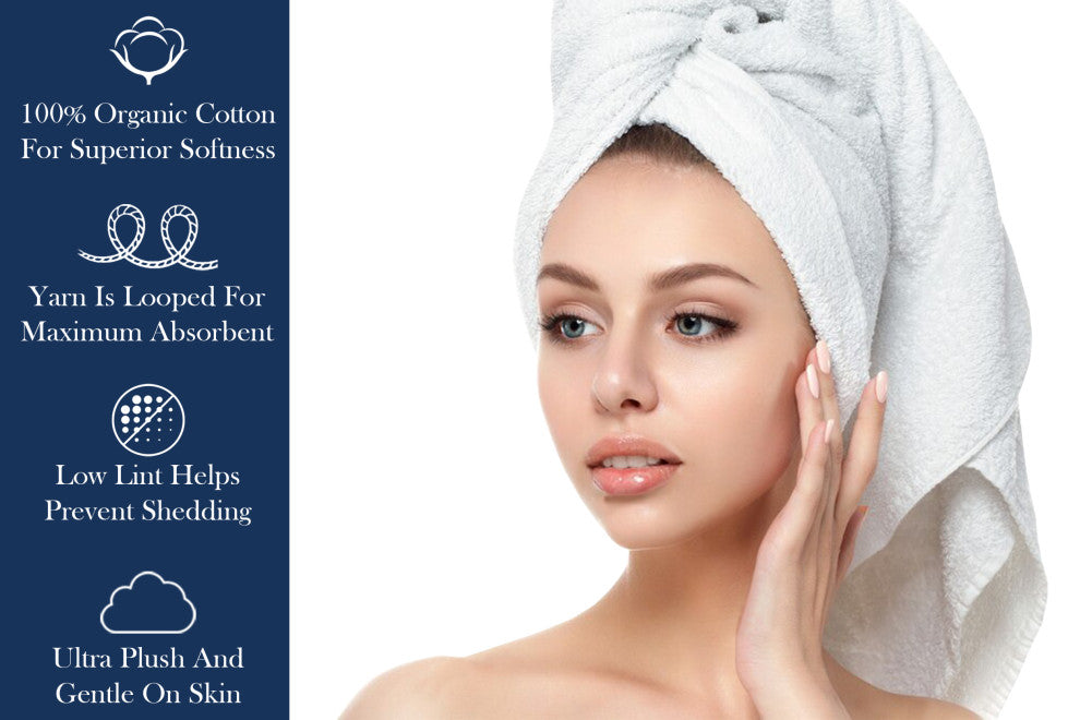 An advanced weaving process results in thousands of fine, untwisted loops that make our Feather Touch Quick Dry Towels up to 10 times more absorbent than traditional cotton terry. At fluffy 650 GSM, these organic cotton sheets are super-soft and fast drying too. Pure Organic Cotton sheet is lightweight, strong, quick dry and impervious to wear while staying delicate after several washes. Sumptuous white plush bath sheet gives a luxurious feel to your restroom while helping you to improve your drying. The two-long-lasting fold sewed edges make this towel durable and long-lasting>BATH SHEET PACK OF 4: This Organic Bath Sheet Pack include 4 Piece Luxurious Plush Bath Sheets (36"X70"). These bath sheets are Constructed with 100% two-ply long-staple organic cotton terry cloth. So, no worry of loose fibers and pilling. Ultimate as a gift for somebody or as a treat for yourself! Raise your bathroom to a higher level with this luxurious Organic Bath Sheets.>MADE OF 100% ORGANIC COTTON: Organic cotton is grown without the use of toxic and persistent pesticides and synthetic fertilizers. Switch to non-toxic & chemical free luxurious & durable towels. Protect your body from allergies and sensitivities caused by chemical dyes and toxins by choosing organic towels. So, these are the best bath sheets for bathroom.>PLUSH AND LUXURIOUS BATH SHEET: These organic bath sheets are constructed with a super soft 2-ply low twist organic cotton yarns with a 650-GSM weight are used to make these bath sheets ultra soft. Luxuriously soft & fluffy feel along with ultra-absorbency,650 GSM construction with a high pile height. Suitable for both homes and hotels.>ULTRA ABSORBENT BATH SHEET: Delara Organic bath sheets are ultra-absorbent with a luxurious feel. These organic sheets contain high pile height which makes these extra fluffy and ultra absorbent. These bath sheets are an ideal choice if you are searching for sustainable, high quality, quick dry towels.>FEATHER TOUCH & QUICK DRY TECHNOLOGY: Feather Touch gives long lasting softness without use of PVA. Quick dry technology ensures incredibly absorbent construction and weaves through Zero twist loom making these towels ultra-absorbent. Low Lint helps prevent shedding and Fade Resistance helps this bath sheet maintain its color through washing.>GOTS CERTIFIED & OEKO-TEX CERTIFIED BATH SHEET: This product meets the strict requirements of the Global Organic Textile Standard (GOTS), the worldwide leading processing standard for organic textiles to ensure a healthier home for you and a better planet for all. When you shop for cotton made without harmful chemicals or pesticides, you are contributing to cleaner soil and waterways. Tested for harmful substances and products substantially in accordance with OEKO-TEX guidelines. These bath sheets are manufactured in an OEKO-TEX Certified factory. OEKO-TEX is an autonomous Certification framework that sure to meet the highest quality standards.>BEST WAYS TO PROTECT YOUR TOWELS:(1) Try not to leave wet towels in a closed environment, such as in a gym bag or laundry basket, because of moisture and bacteria build-up, towels could begin to develop an odor. (2) Towels can become rough if fabric softeners or detergents are used frequently, as they break down the fibers of the towel, which can cause towels may have some lint, shed fibers, discomfort, or even skin irritation. (3) Towels may lose their color or worn over time with frequent use and washing or especially when exposed to sunlight or harsh detergents.>EASY TO CARE: Delara Organic cotton bath sheet blooms after every wash; your products will continue to soften as you use and clean them. Machine washes warm, normal cycles with like colors. Do not bleach. Tumble dry low. It is important to properly care for towels by washing them in hot water with a small amount of detergent, avoiding fabric softeners, and drying them thoroughly. It is also important to replace towels regularly to ensure they maintain their absorbency and overall quality.