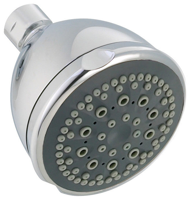 Highlights:Finish : ChromeMaterial : SteelFlow rate: 2.5 gpmConnection size : 1/2"Assembled width : 6.4"Assembled length : 4.1"Assembled height : 7.4"Number of spray settings : 5 settingsSoft, rubber spray holes allow you to easily wipe away calcium and lime build-up from the spray face of your shower head with the touch of a finger