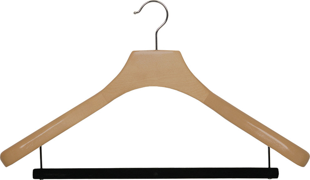 Deluxe Wooden Suit Hanger With Velvet Bar, Natural/Chrome, Box of 24