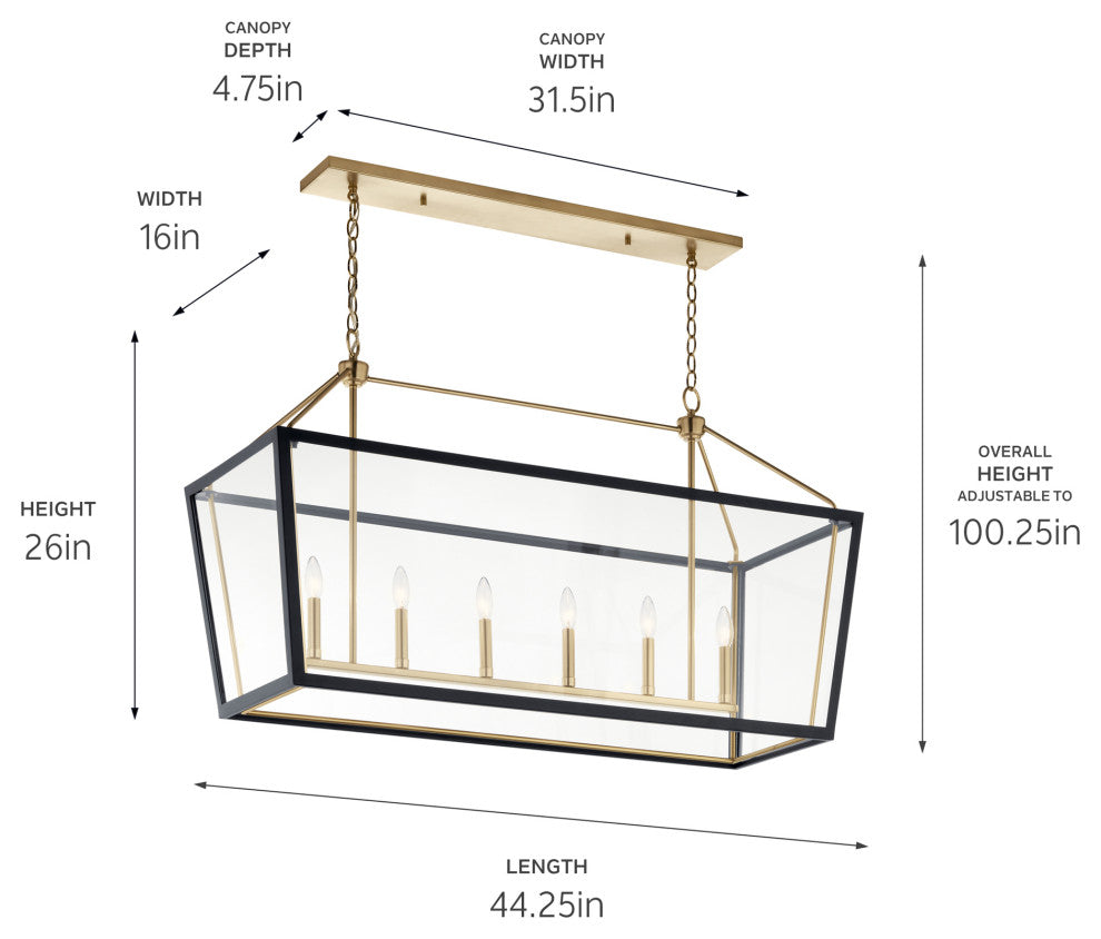 The Delvin linear chandelier''s removeable clear glass panes let you curate your look from formal to casual. Its dual finish makes it easy to coordinate. Instantly add an elevated style and sophistication to a space with its layered architectural design.