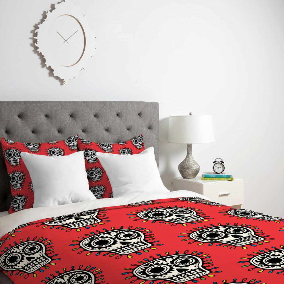 Deny Designs Andi Bird Sugar Skull Fun Red Duvet Cover - Lightweight