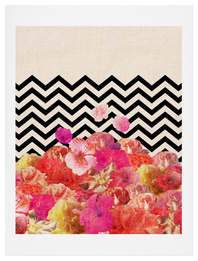 Deny Designs Bianca Green Chevron Flora 2 Art Print
