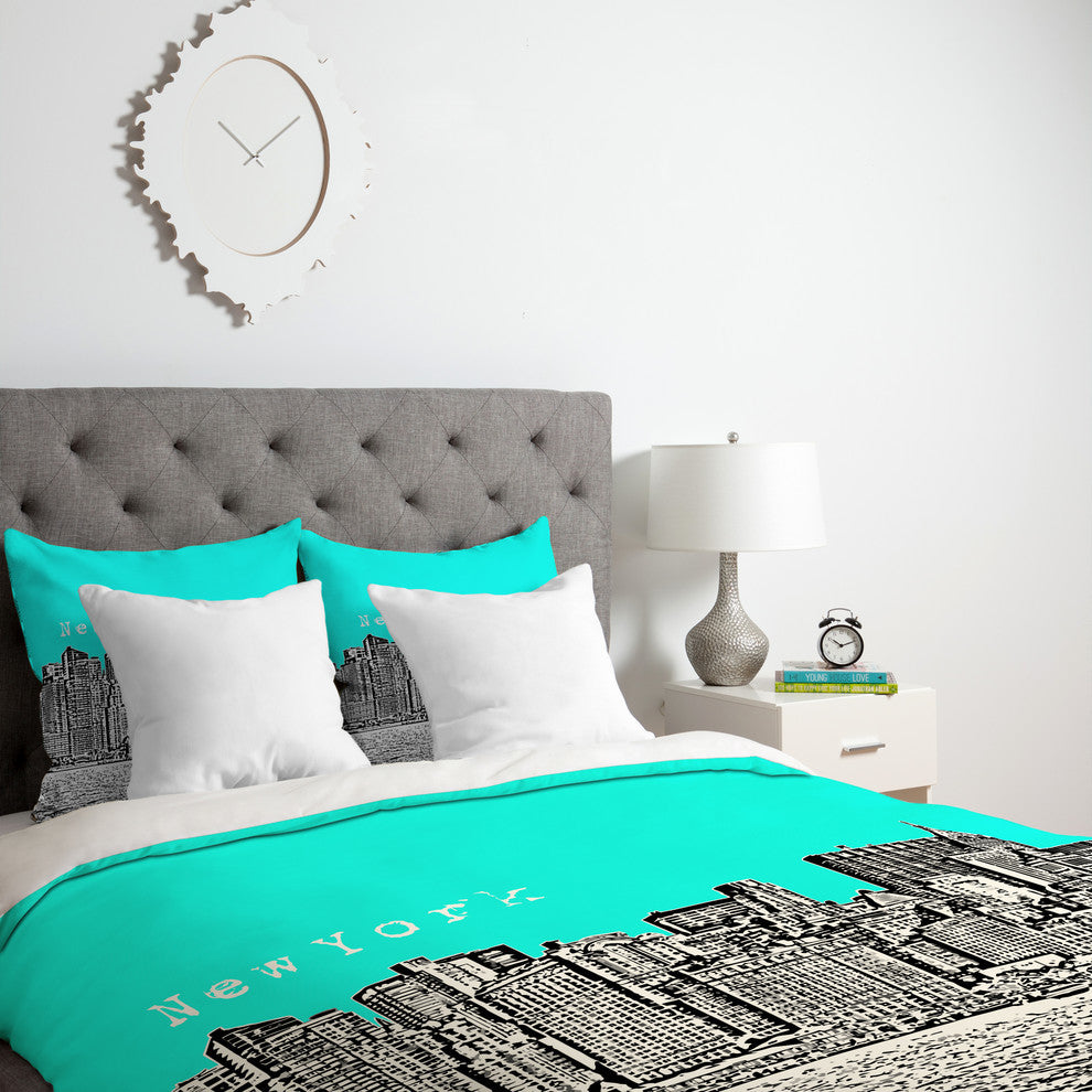Deny Designs Bird Ave New York Aqua Duvet Cover - Lightweight