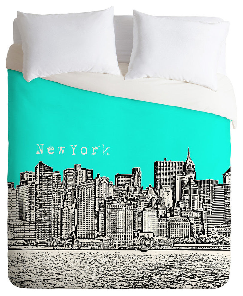 Deny Designs Bird Ave New York Aqua Duvet Cover - Lightweight