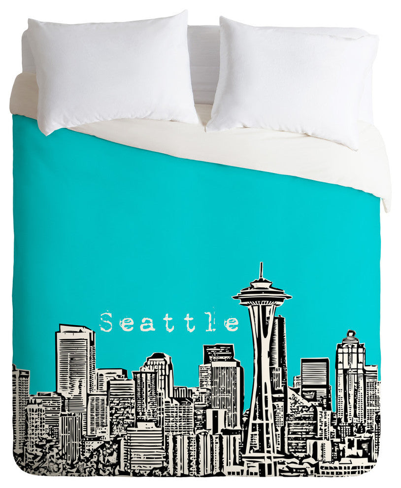 Deny Designs Bird Ave Seattle Teal Duvet Cover - Lightweight