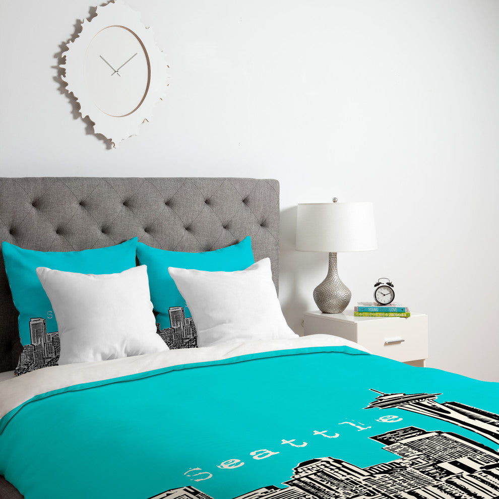 Deny Designs Bird Ave Seattle Teal Duvet Cover - Lightweight