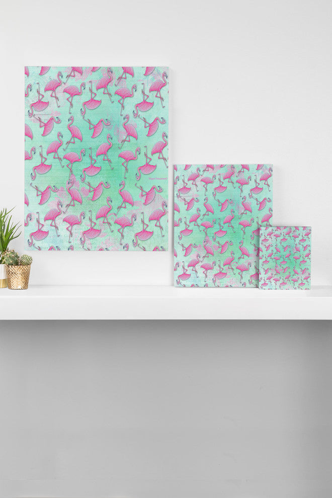 Deny Designs Madart Inc Pink And Aqua Flamingos Art Canvas