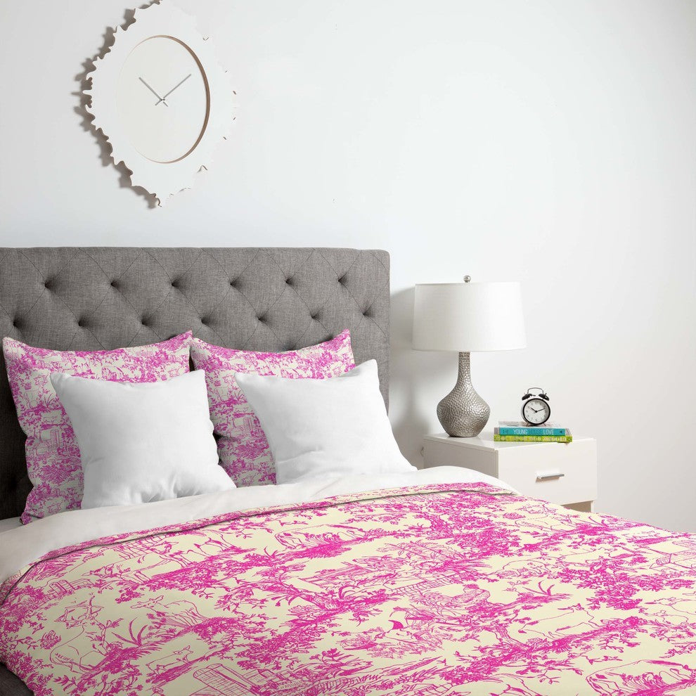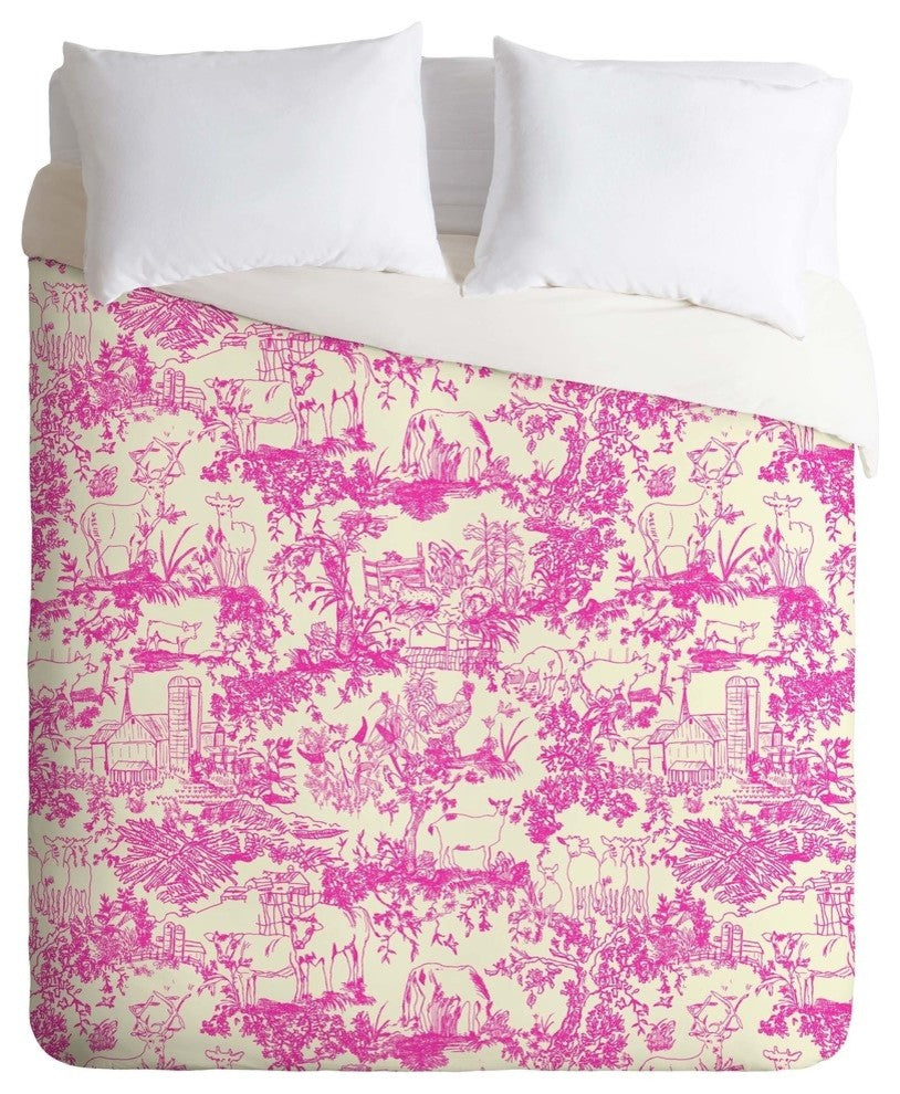 Deny Designs Rachelle Roberts Farm Land Toile In Pink Duvet Cover - Lightweight