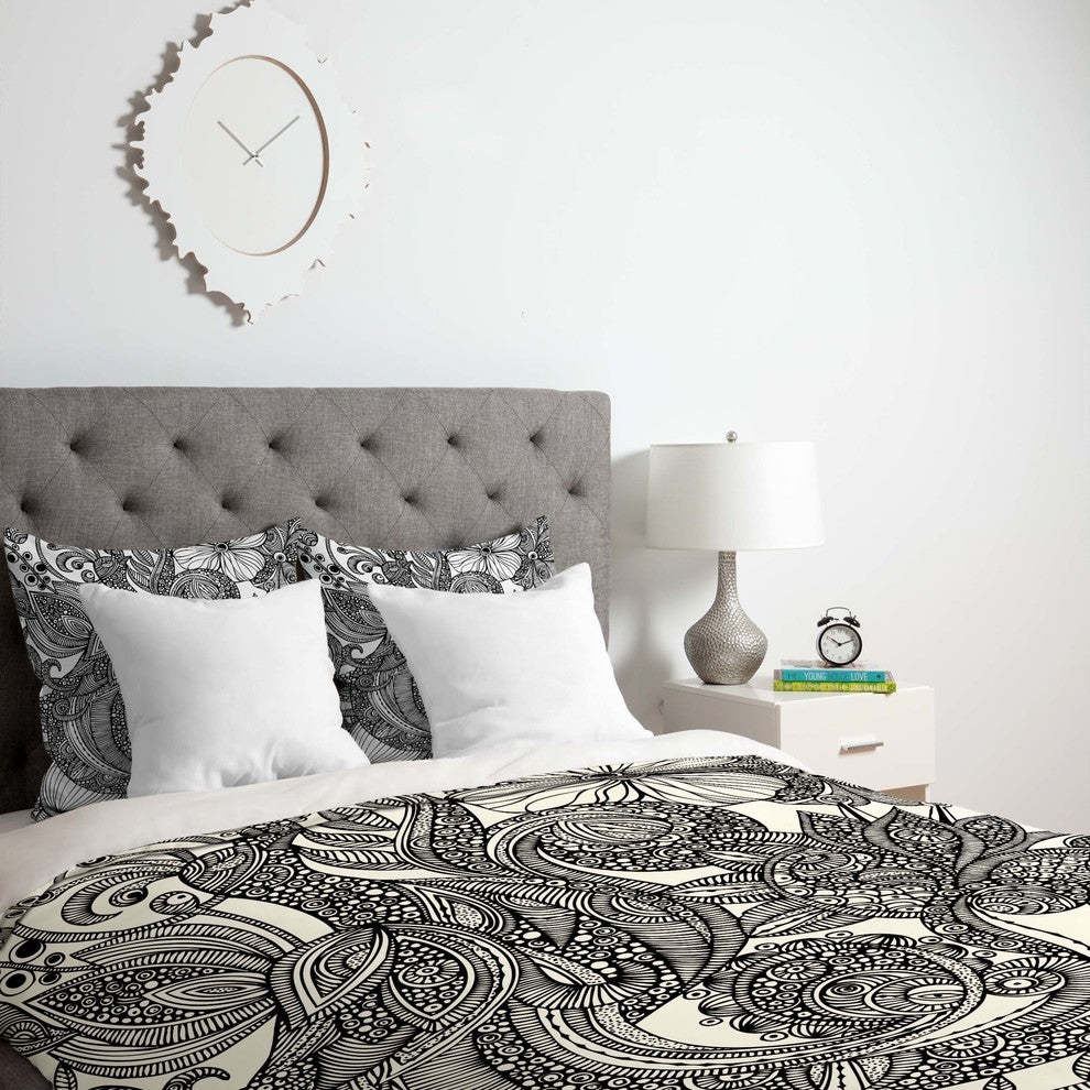Deny Designs Valentina Ramos Bird In Flowers Black White Duvet Cover - Lightweig