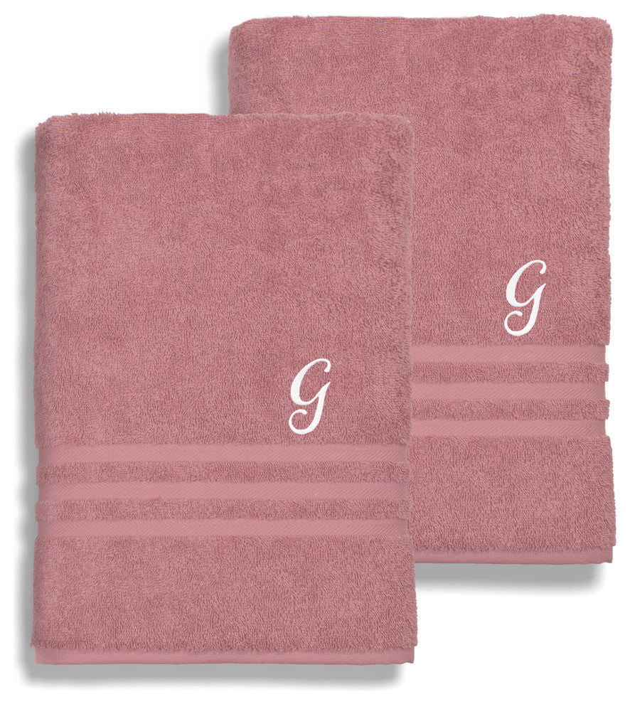 Denzi Bath Sheets With Monogrammed Letter, Set of 2, G