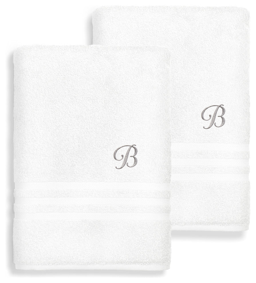 Denzi Bath Towels With Monogrammed Letter, Set of 2, B
