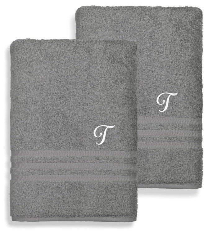 Denzi Bath Towels With Monogrammed Letter, Set of 2, T