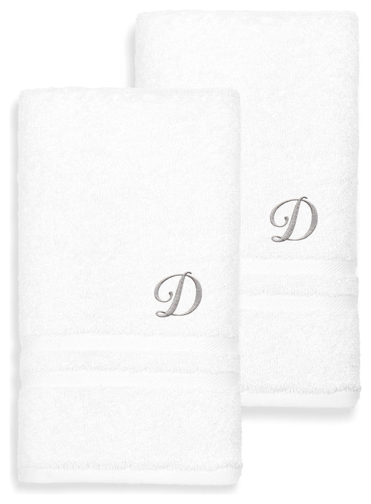 Denzi Hand Towels With Monogrammed Letter, Set of 2, D