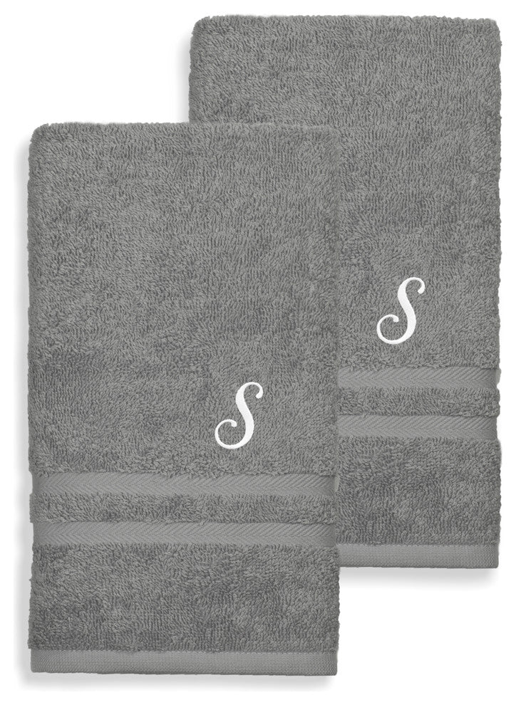 Denzi Hand Towels With Monogrammed Letter, Set of 2, S