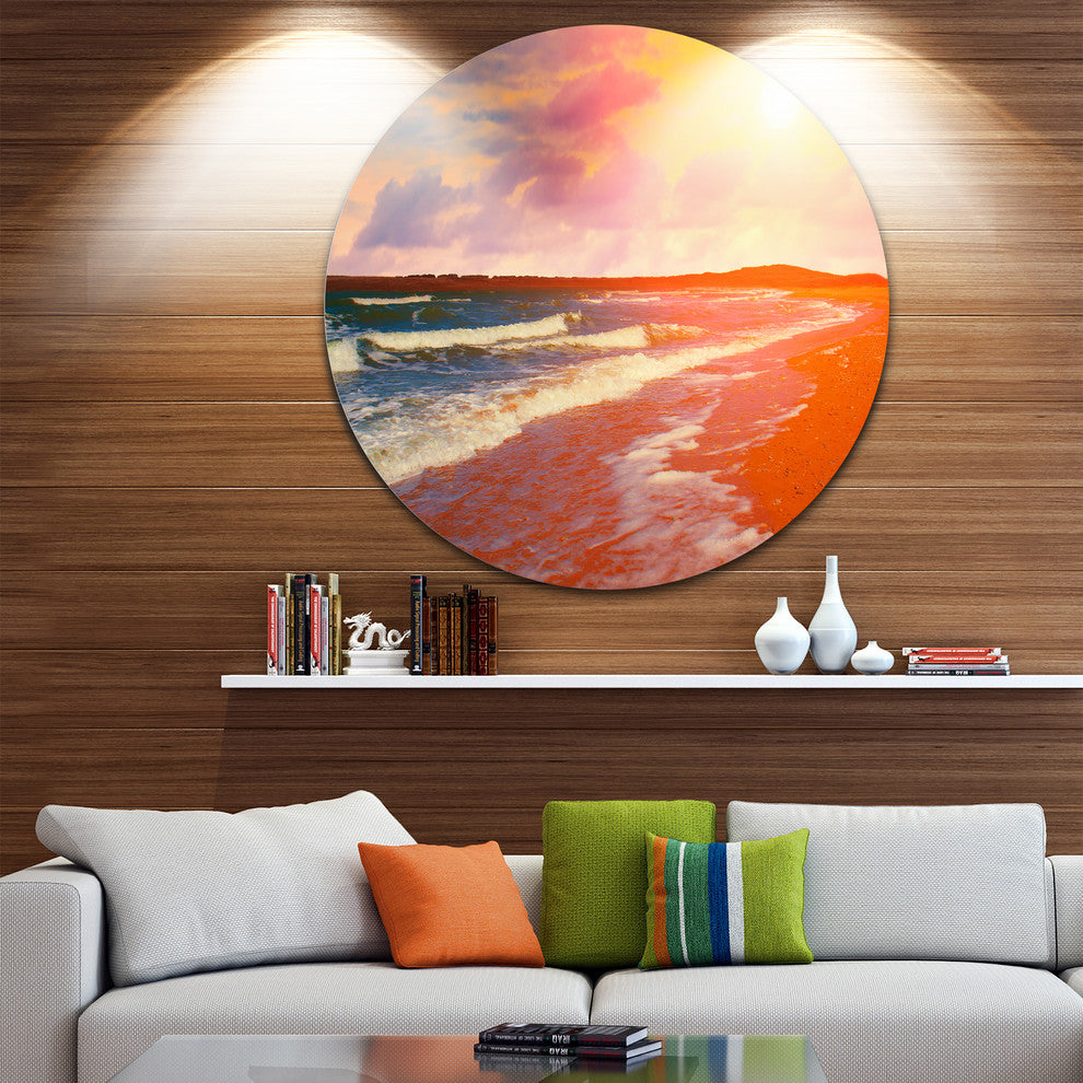 Desert Beach At Sunset, Modern Beach Round Metal Wall Art, 36"