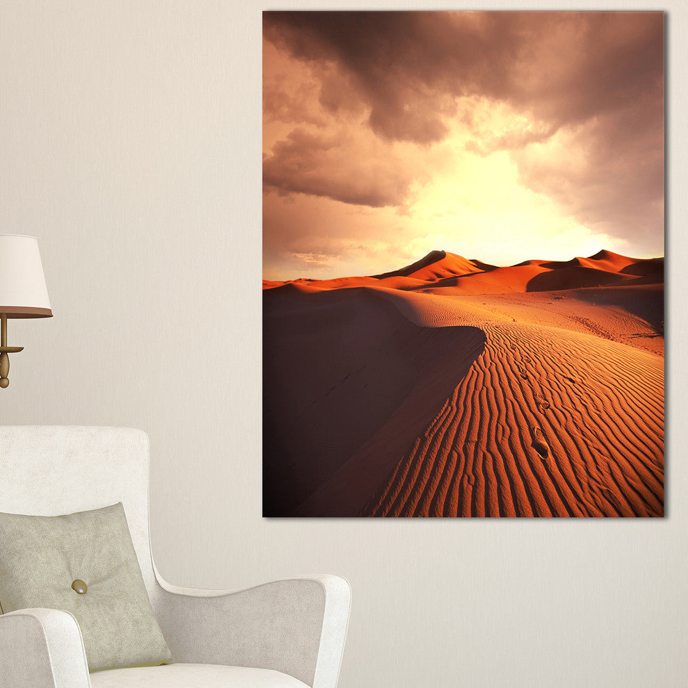 "Desert Dunes Under Cloudy Sky" Modern Landscape Wall Art Canvas, 30"x40"