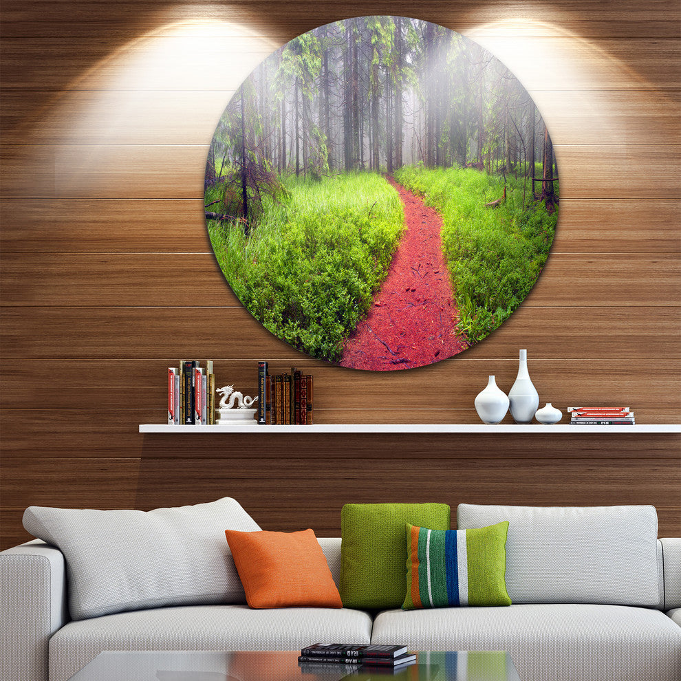 Desert Footpath To Misty Forest, Landscape Round Metal Wall Art, 38"