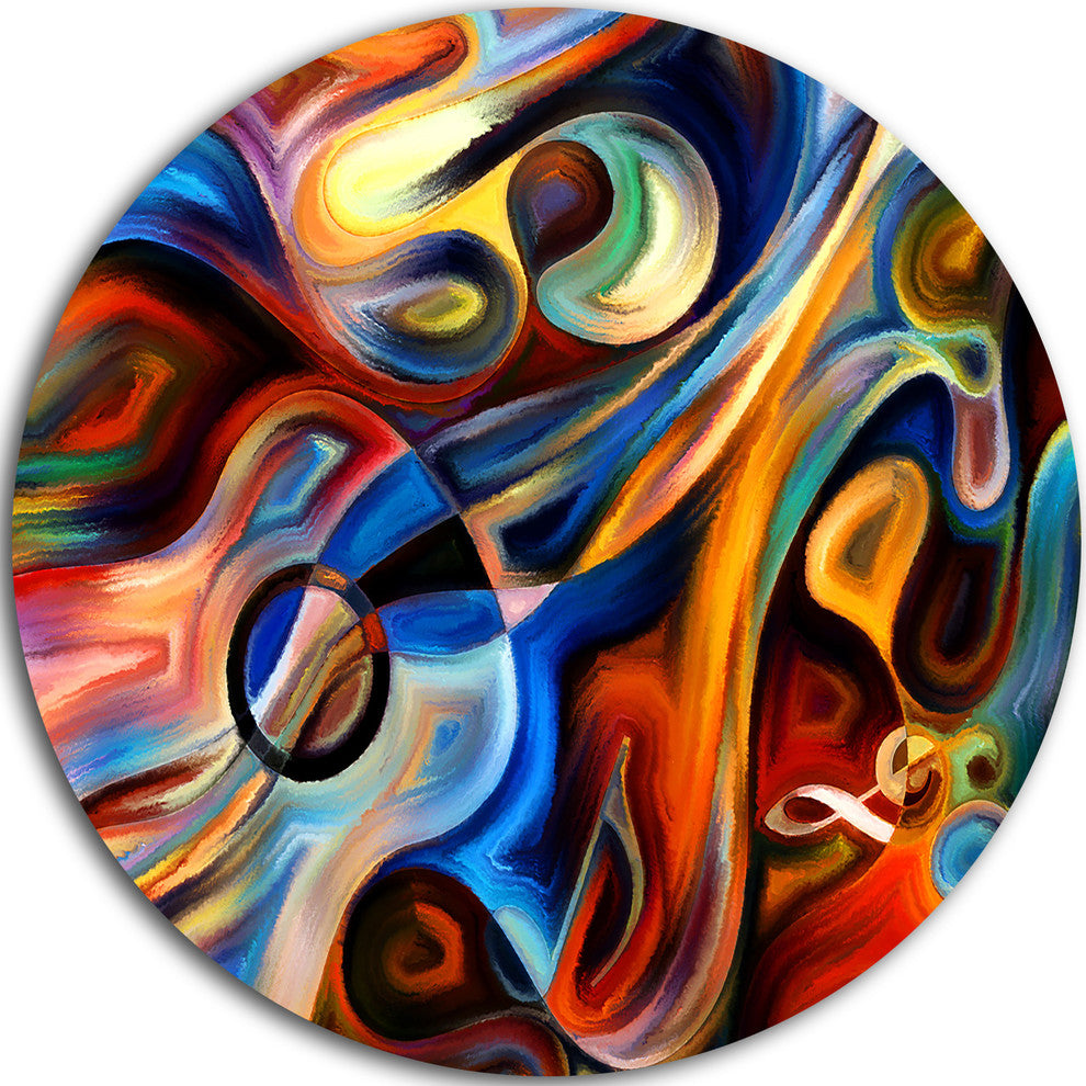 Designart 'Abstract Music and Rhythm' Abstract Glossy Circle Metal Wall Art, Dis