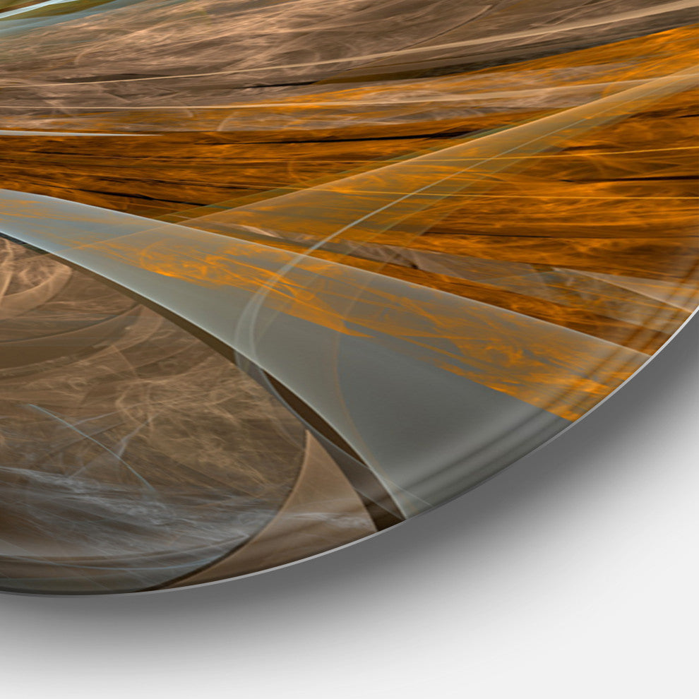 Designart Symmetrical Yellow Fractal Flower Digital Art Circle Metal Artwork 23"