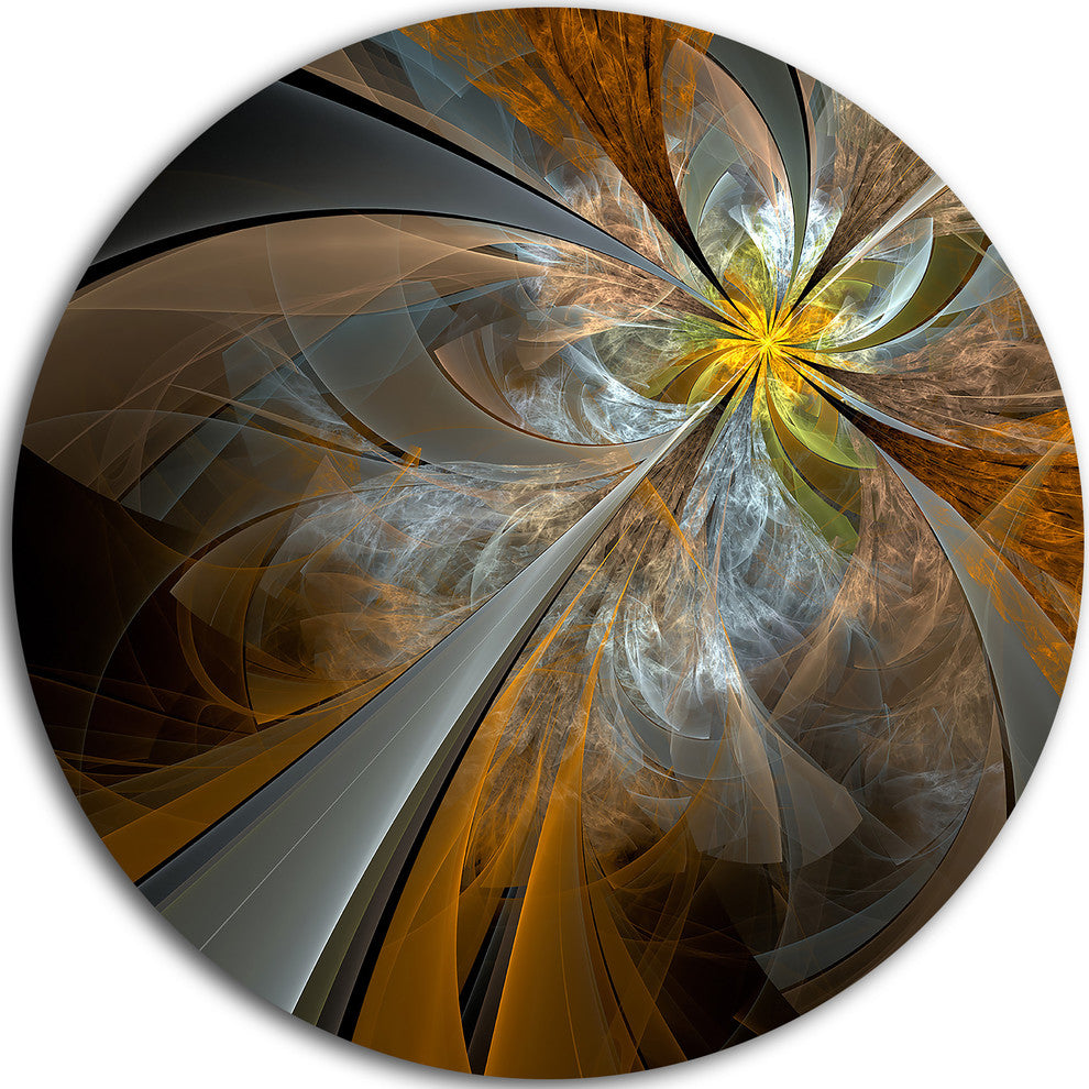 Designart Symmetrical Yellow Fractal Flower Digital Art Circle Metal Artwork 36"