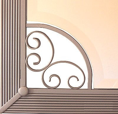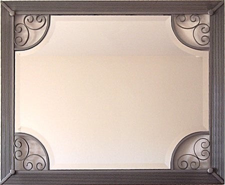 This is an exclusive design by Fine Crafts & Imports for your home decor in a silver finish. This mirror is made out of solid pieces of wrought iron soldered together into this piece of art, in a silver color. The frame is composed of eight solid round bars (1/4 diameter) and one squared one (1/2" side) and most of the weight is because of this heavy construction!The glass mirror is beveled at the four corners in a 10" diameter circle and all the way around its four sides for an added touch of elegance. The glass mirror itself measures 32.2" by 28". To hang it in your walls, make sure you have very strong nails attached to solid wood, the mirror weights 51 pounds! But it is worth its weight. Made by Mexican ironsmiths who design exclusive models for us to offer you.This mirror will add style and elegance to your home decor, its unique design will impress your senses and your friends''."Hand-hammered and mold-cut to perfectionHandcrafted by Mexico''s Finest ArtisansWe include 1" long brown screws in all of our hammered copper switch plates