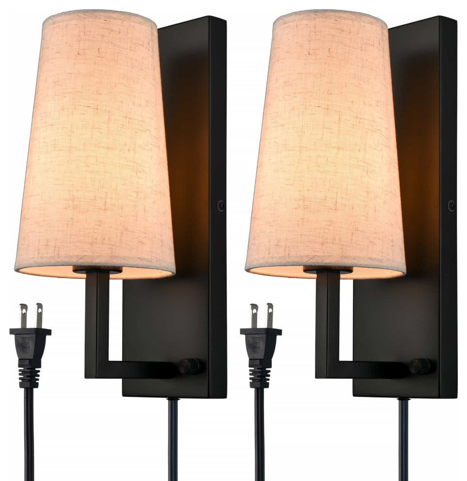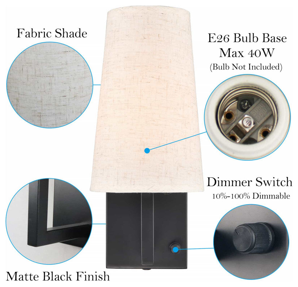 Dimmable Plug, Fabric Wall Lamps Set of Two,Black