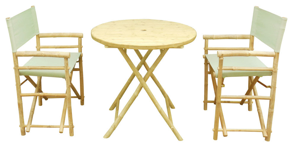 Hand-crafted solid Bamboo that enrich the soul, inspire the mind while treating the earth with respect. Lightweight yet sturdy, it is carefully hand crafted with sustainable bamboo material. Dendrocalamus Strictus is a solid bamboo which grows like a tree and is spreading profusely only around Ho Chi Minh City in the South of Vietnam and neighboring regions. It is the perfect material for housing construction, furnishings, other home products, and a perfect substitute to wood. Based in Ho Chi Minh City, we are in a unique position to take advantage of this unique material to provide sustainable solutions to our customersOur products are handmade and finished without the use of harmful materials are created in collaboration with artisans at home and abroad contribute to personal wellbeing while benefiting our local & global community.Dimensions:Table: 31.5"L x 31.5"W x 29.5"HChairs: 22.83"L x 18.11"W x 35.43"H