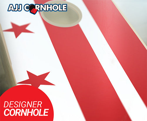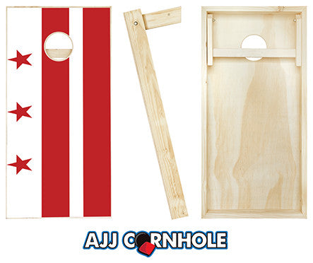 This top of the line District of Columbia Flag Cornhole Set is sure to bring life to any party. Set comes ready to play with 4 red and 4 royal blue cornhole bags! All sets are made using a premium 2x4 frame and 1/2" sanded plywood playing surface. Each set has folding 2x4 legs secured with galvanized bolts.