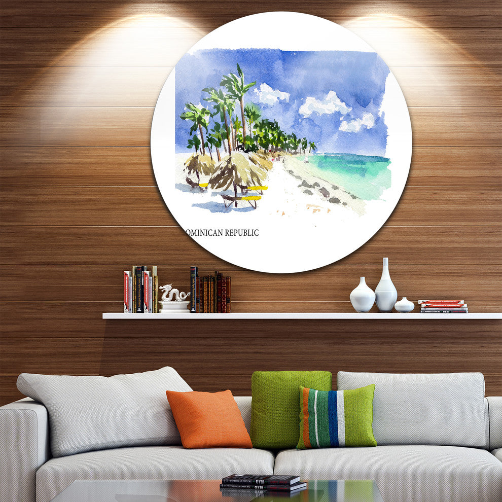 Dominican Republic Vector Illustration, Cityscape Round Wall Art, 11"
