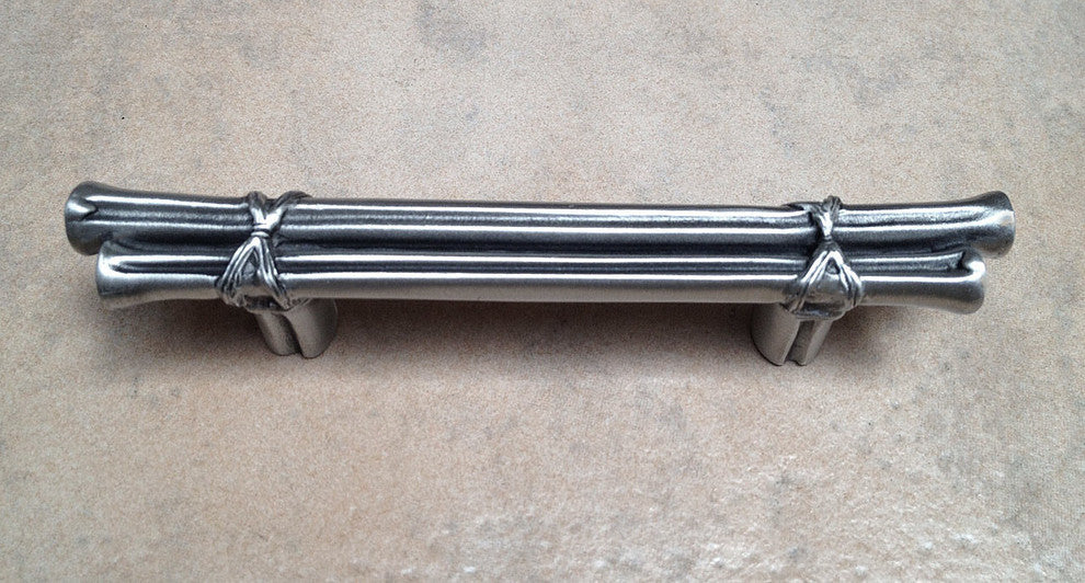 Accent your cabinetry with this unique double Bamboo Pull tied together-Asian style bamboo tied at endsIncludes Accessories: 2) 1"-8/32 screwsCenter-Center: 3"Please see secondary image for color finish swatch
