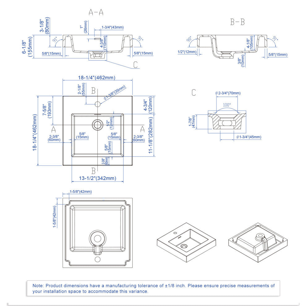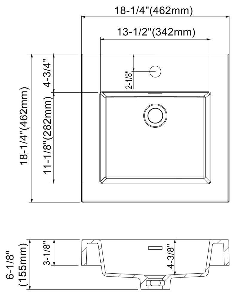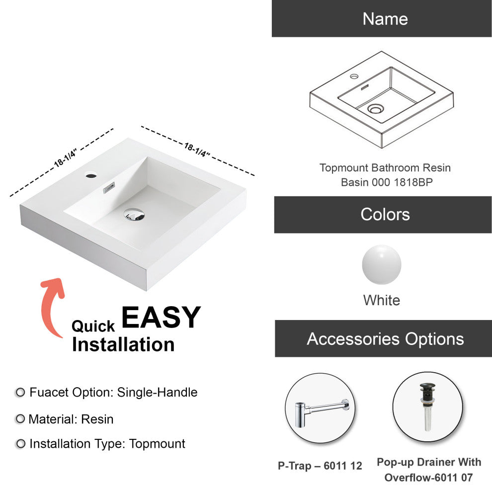 Dowell 18" FTB Resin Bathroom Vanity Basin, White, 18wx18dx6h