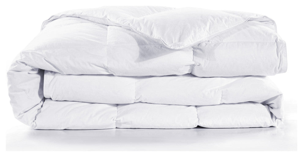 Before polyester was invented, feathers and down were used for filling pillows and comforters for wealthy nobles and royalty. This queen/king duvet insert brings superior loft with pure comfort. The soft 100% cotton shell is soft to the touch and is filled with down and feathers for the ultimate loft and comfort. The sterilized white duck feathers and down fill provides warmth for every season so you can enjoy a great night''s sleep.Includes: (1) King/Queen Duvet InsertMeasurements: King: 110" X 96" Queen: 92'''' X 96''''Care: Machine wash warm in a commercial-sized washer, gentle cycle, tumble dry low, remove promptly. Do not bleachMaterial: Shell: 100% cotton, Filling: 5% down/95% feather.