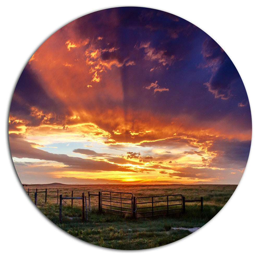 Dramatic Sunset Over Prairie, Landscape Round Metal Wall Art, 11"