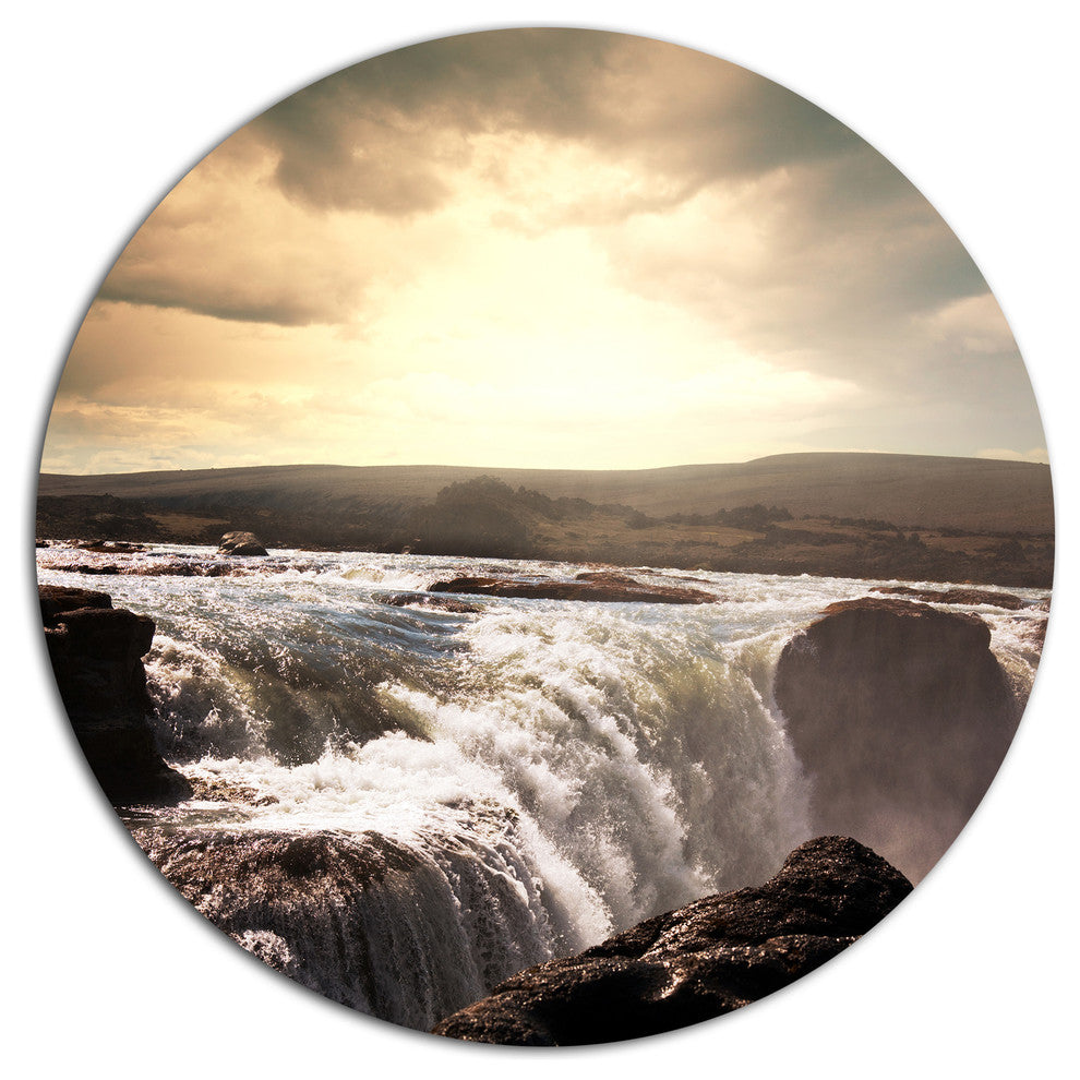Dramatic Waterfalls In Iceland, Landscape Large Disc Metal Artwork, 23"