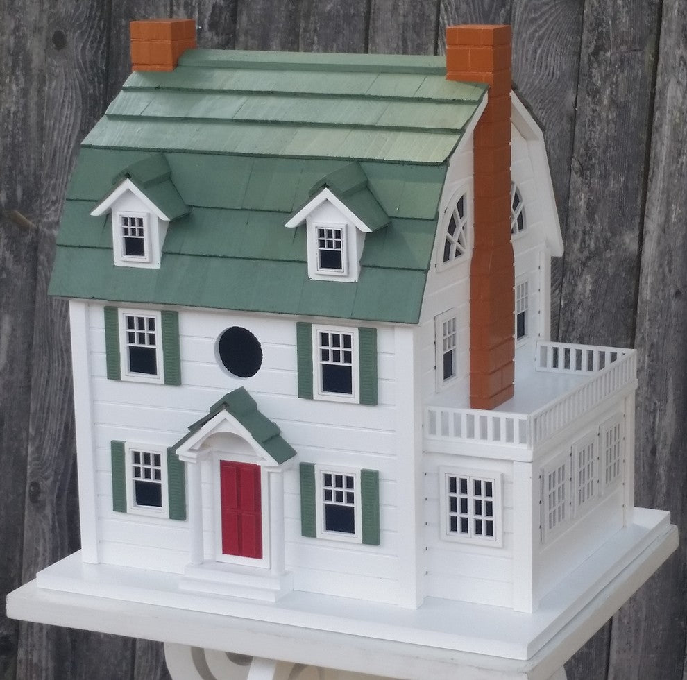 Dutch Colonial Birdhouse (aka Amityville Horror House)Descriptions:Constructed with today''s birds in mind, our charming 1920''s Dutch Colonial home sports its distinctive profile. It''s not uncommon to hear it described as a "barn house." The double angled, gambrel roof allowed a complete second story to be built at minimal expense. One infamous Dutch Colonial, the Amityville Horror House, situated in a suburban neighborhood in Long Island, New York was the site of a series of mysterious murders. To this day, Amityville residents report paranormal phenomena in and around the house. A 1 ¼†hole will allow wrens, finches, chickadees, nuthatches and titmice to nest. The roof is topped with sturdy pine shingles. Ventilation, drainage and a removable back wall make this birdhouse as functional as it is spooky. Item Dimensions: 12.5 in L x 10.5 in W x 13.5 in H