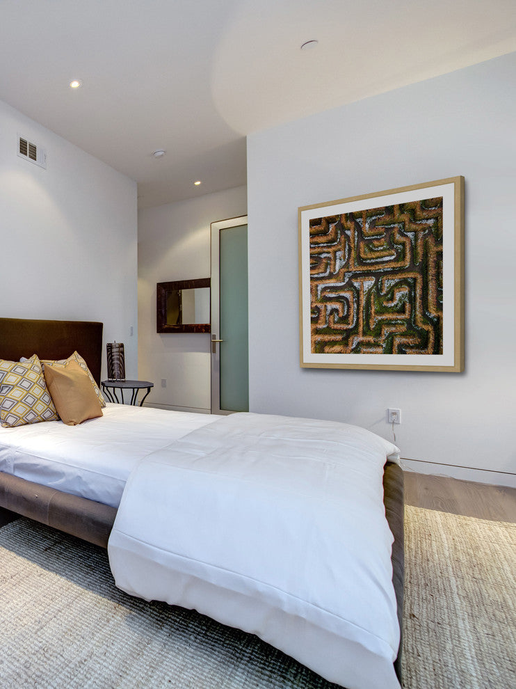 "Earth Maze" Framed Print by Karolis Janulis features vivid tones and supple artistry. Mounted in a gorgeous frame, this 12 inch wide by 12 inch tall piece will be an exceptional addition to any room. Top quality Giclee print on high resolution Archive Paper Artwork by Karolis Janulis Professionally framed and mounted on acid free archive matte High quality durable non-warping frame Arrives ready to hang Includes a certificate of authenticity Made in the USA