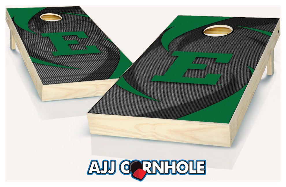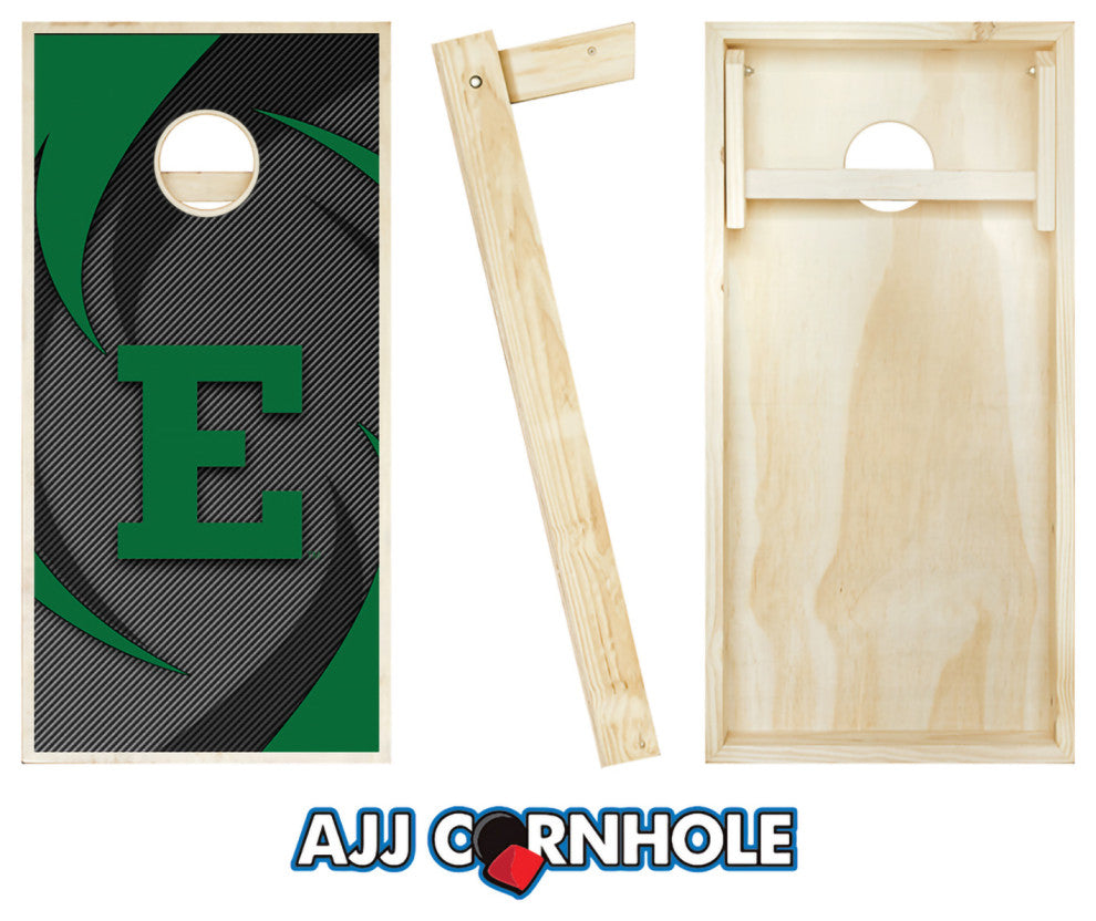 Officially Licensed Eastern Michigan Cornhole Set. Show off your Eagle pride at your next cookout or tailgate with our signature swoosh design. Cornhole Set comes ready to play right out of the box, no assembly required! Set comes complete with 2 wooden game boards and 8 officially licensed Eastern Michigan bags! Officially Licensed Collegiate ProductRegulation Size (2 Feet x 4 Feet)Tournament Grade ConstructionFolding Legs For Easy StorageAll Wood Construction Set Includes 8 Bags. All sets are made using a premium 2x4 frame and 1/2" sanded plywood playing surface. Each set has folding 2x4 legs secured with galvanized bolts.
