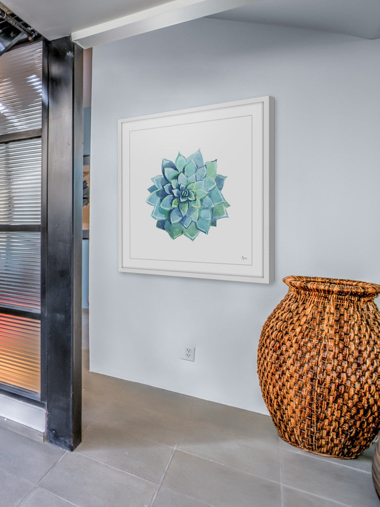 "Echeveria Blue Star" Framed Painting Print, 18"x18"