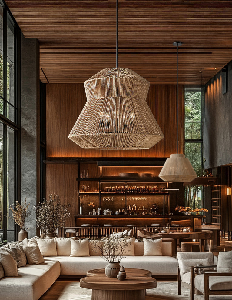 Eco Nido Natural Rope Pendant 5 Light 24"Lx24"Wx16.75"H