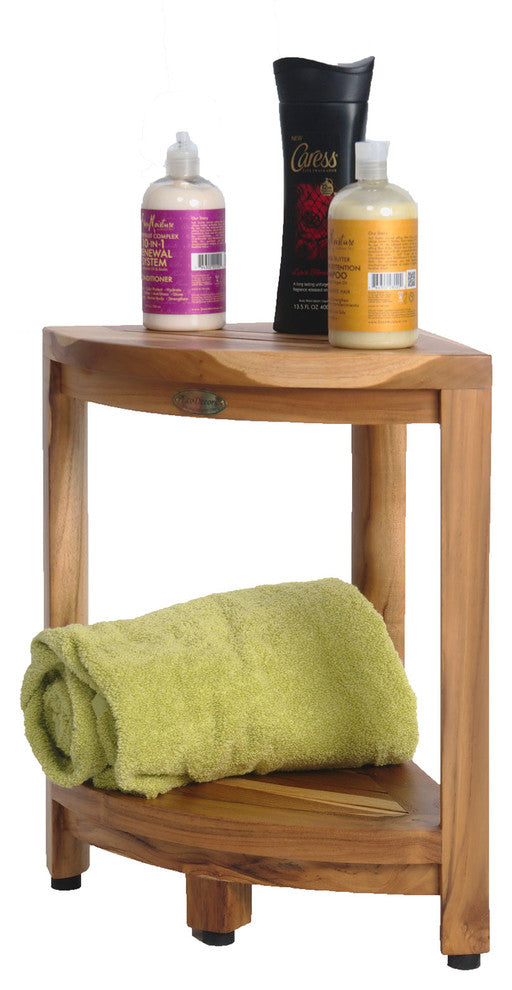 Ecodecors Earthyteak Corner Teak Shower Stools or Shelf, 12"x12"x18"