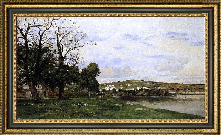 14" x 28" Edmond Yon View of Andelys framed premium canvas print reproduced to meet museum quality standards. Our Museum quality canvas prints are produced using high-precision print technology for a more accurate reproduction printed on high quality canvas with fade-resistant, archival inks. Our progressive business model allows us to offer works of art to you at the best wholesale pricing, significantly less than art gallery prices, affordable to all. This artwork is hand stretched onto wooden stretcher bars, then mounted into our 3 3/4" wide gold finish frame with black panel by one of our expert framers. Our framed canvas print comes with hardware, ready to hang on your wall. We present a comprehensive collection of exceptional canvas art reproductions by Edmond Yon.