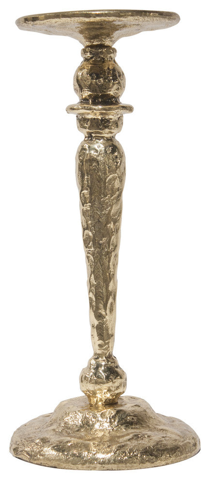 Give your room an intimate ambiance with the Edworth Polished Brass Hammered Candleholder. Arrange a set of these candleholders on a mantle or in your entryway for a unique display. Each piece measures 5 by 12.5 inches and is made of brass.