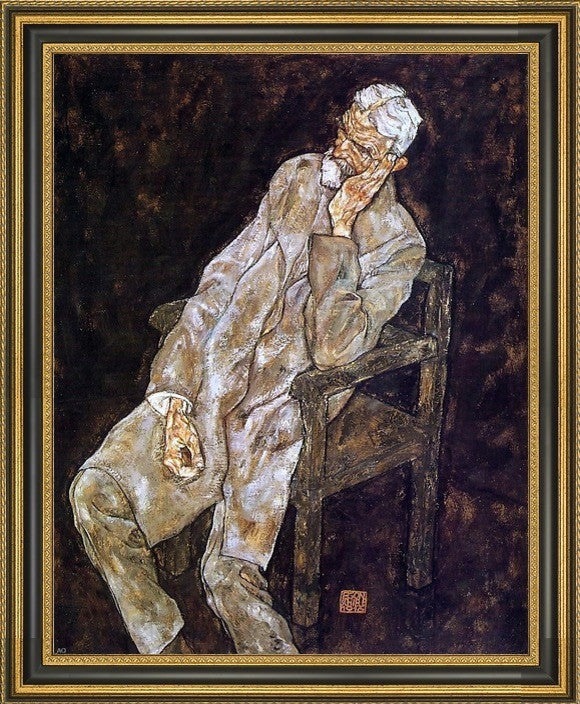 16" x 20" Egon Schiele Portrait of an Old Man (also known as Johann Harms) framed premium canvas print reproduced to meet museum quality standards. Our Museum quality canvas prints are produced using high-precision print technology for a more accurate reproduction printed on high quality canvas with fade-resistant, archival inks. Our progressive business model allows us to offer works of art to you at the best wholesale pricing, significantly less than art gallery prices, affordable to all. This artwork is hand stretched onto wooden stretcher bars, then mounted into our 3 3/4" wide gold finish frame with black panel by one of our expert framers. Our framed canvas print comes with hardware, ready to hang on your wall. We present a comprehensive collection of exceptional canvas art reproductions by Egon Schiele.
