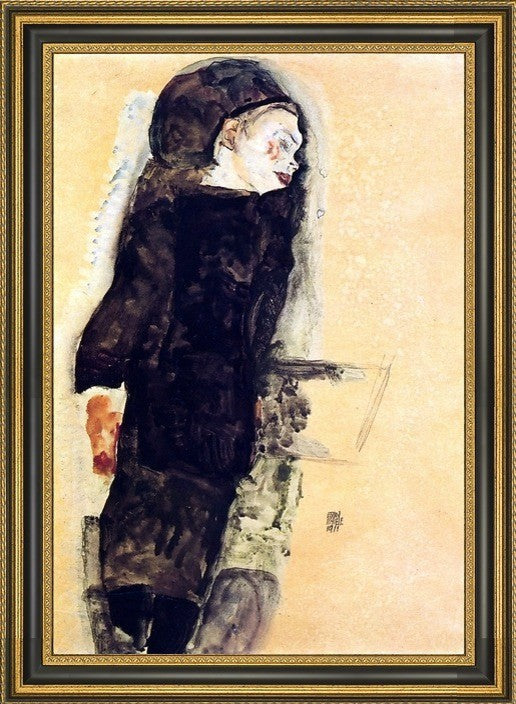 18" x 27" Egon Schiele Reclining Girl with Round Head framed premium canvas print reproduced to meet museum quality standards. Our Museum quality canvas prints are produced using high-precision print technology for a more accurate reproduction printed on high quality canvas with fade-resistant, archival inks. Our progressive business model allows us to offer works of art to you at the best wholesale pricing, significantly less than art gallery prices, affordable to all. This artwork is hand stretched onto wooden stretcher bars, then mounted into our 3 3/4" wide gold finish frame with black panel by one of our expert framers. Our framed canvas print comes with hardware, ready to hang on your wall. We present a comprehensive collection of exceptional canvas art reproductions by Egon Schiele.