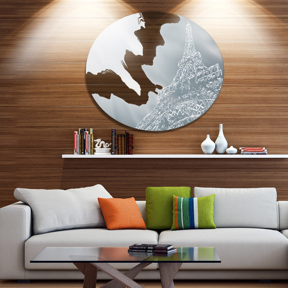 Bring Contemporary Abstraction to your home with this large Circle Metal wall art. This Eiffel Tower Art Background Metal Artwork makes it the focal point of any room or office.