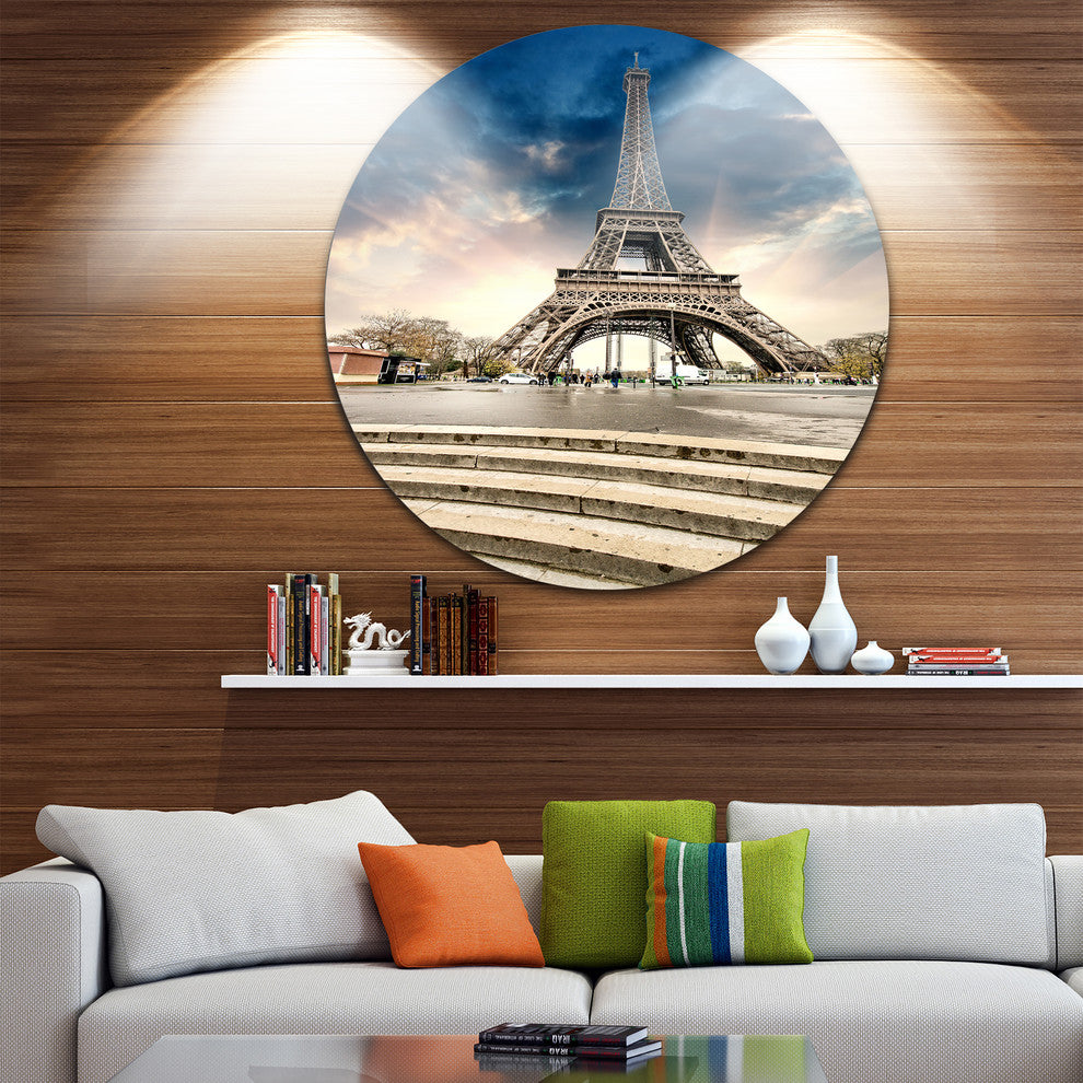 Eiffel Tower With Stairs, Landscape Photo Round Wall Art, 11"