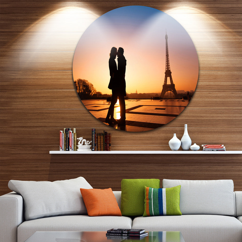 Eiffel With Kissing Couple, Landscape Photo Disc Metal Wall Art, 23"
